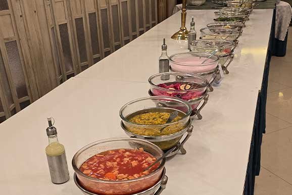 منو غذا هتل کیان مشهد در رستوران 250 نفره مجموعه انتخابی بوده و با بهترین کیفیت آماده سرو می باشد. در پخت غذاهای سنتی و مدرن این اقامتگاه از مواد اولیه استفاده شده است که با برنج ایرانی طبخ می شود. محیط آشپزخانه کاملا بهداشتی و استاندارد است و توسط سرآشپزهای حرفه ای پخته می شود. شما می توانید انواع غذاهای سنتی از جمله قرمه سبزی، چلوگوشت، انواع کباب و جوجه و خورشت قیمه را انتخاب کنید در محیط آرام و تمیز رستوران میل کنید. رستوران هتل کیان ظرفیت پذیرایی از حدود 150 نفر را دارد و با منوی انتخابی و سرو غذا در دو وعده ناهار و شام، از میهمانان پذیرایی میکند. صبحانه بهصورت بوفه سرو میشود. کافیشاپ هتل نیز در طبقه همکف قرار دارد و انواع نوشیدنیهای سرد و گرم را در محیطی آرام ارائه میدهد.