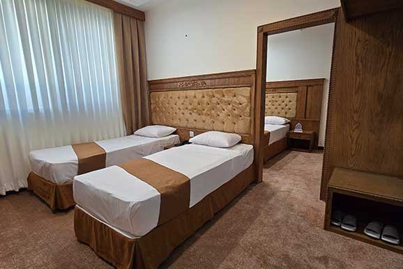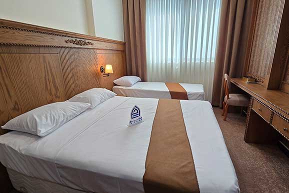 هتل نگین حرم مشهد یک هتل دو ستاره، نوساز و با طراحی شیک و مدرن است که اقامتی راحت و اقتصادی را برای زائران و مسافران فراهم میکند. یکی از بزرگترین مزایای رزرو هتل نگین مشهد، موقعیت مکانی فوقالعاده آن است. این هتل در خیابان طبرسی 10، کوچه نوغان قرار دارد و فاصله آن تا ورودی حرم مطهر رضوی تنها حدود5 الی 10 دقیقه پیادهروی است. قرارگیری در یکی از خیابانهای تاریخی مشهد، حال و هوای زیارت شما را دوچندان میکند.